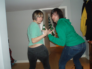 HAPPY BIRTHDAY LINz!!! we're just getting ready to go out... we'll probably not even get into a pub at this rate... check out that 42 inch tv obviously, I'm more versatile in front of the camera. note joe's same face twice in a row. nice try with the beer bud.